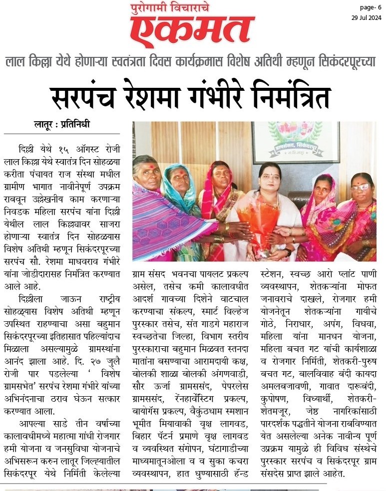 सिकंदरपूर गाव हे शाश्वत आणि सर्वसमावेशक विकासाचे दीपस्तंभ म्हणून उभे आहे. मी नेतृत्व आणि सहयोगी भावनेची प्रशंसा करतो ज्यामुळे हे यश शक्य झाले आहे..”