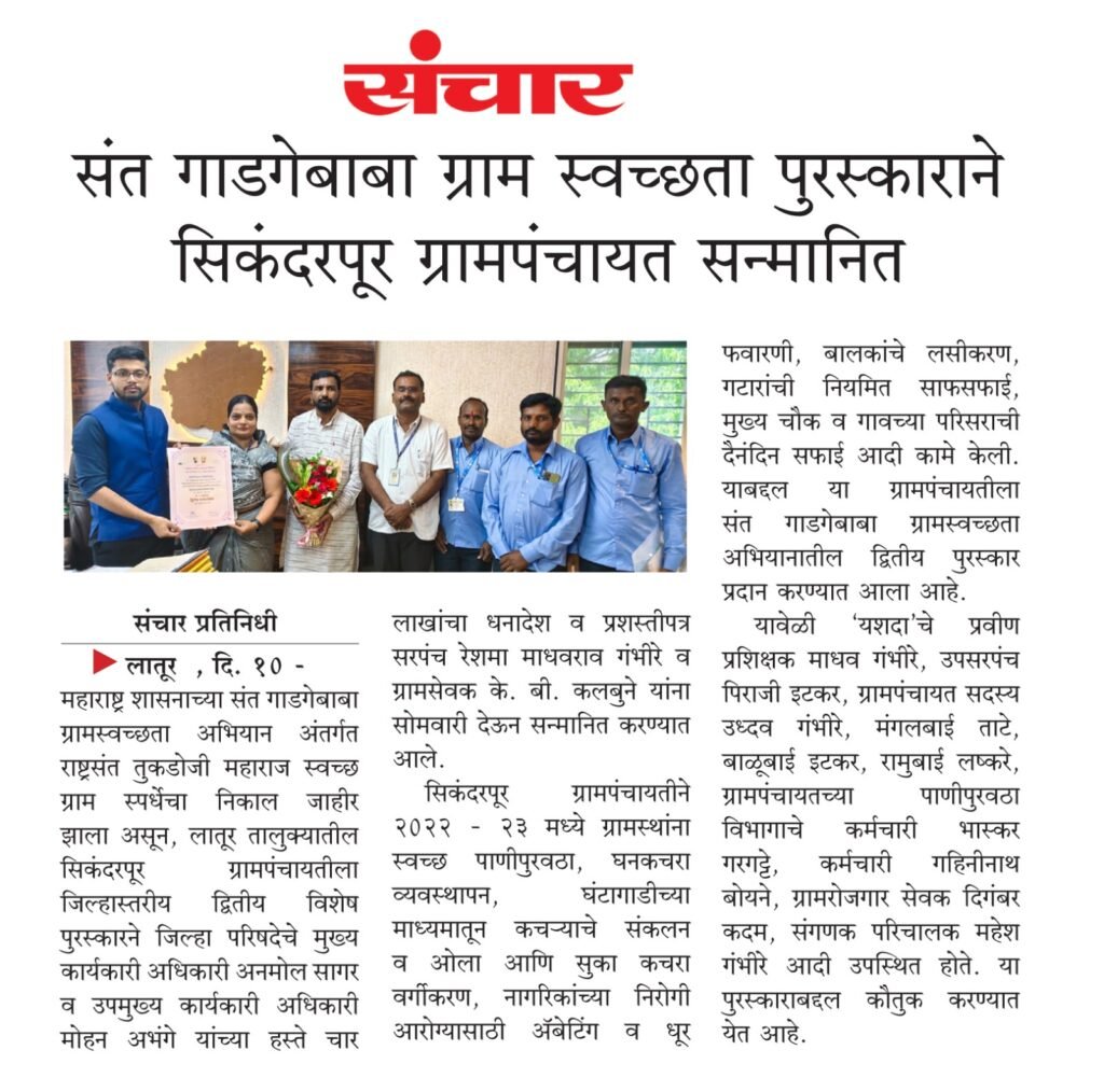 - संत गाडगे बाबा स्वछता 2022-23 जिल्हा स्तरीय पुरस्कार